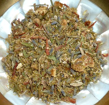 Kalmus, Sandelholz weiß, Weißer Salbei, Weihrauch, Wacholder, Eisenkraut, u.a.