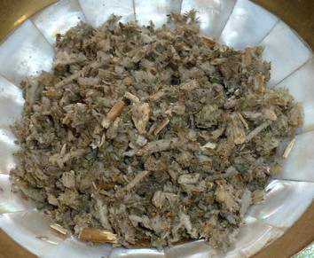 Andorn, Wacholder, Eisenkraut, Beifuß und Johanniskraut, Tannennadeln und Fichtenharz (nur wenig verwenden, da es sehr viel Rauch erzeugt)