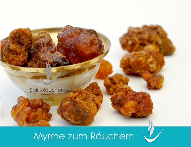 Die Myrrhe ist das Harz der Göttinnen. Sie verstärkt und vertieft weibliche Tendenzen und verbindet mit den Erdkräften. In der Räucherung verstärkt es die weibliche Anziehungskraft und Sinnlichkeit. Der herb-süße, erdige Myrrheduft beruhigt, erdet und verdichtet. Er zieht den Geist aus allzu luftigen Höhen zurück, beruhigt verwirrte Gedanken und läßt einen wieder den Boden unter den Füßen spüren.