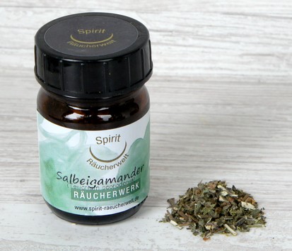 Die Salbeigamanderenergie hilft Ängste im zwischenmenschlichen Bereich abzubauen, indem sie das Selbstbewußtsein stärkt. Verworrenes, unkonzentriertes Gedankenchaos wird geklärt, zentriert und auf den Punkt gebracht, so dass neue Sichtweisen entstehen können. Harmonisiert die Verbindung zwischen 6. und 7. Chakra.