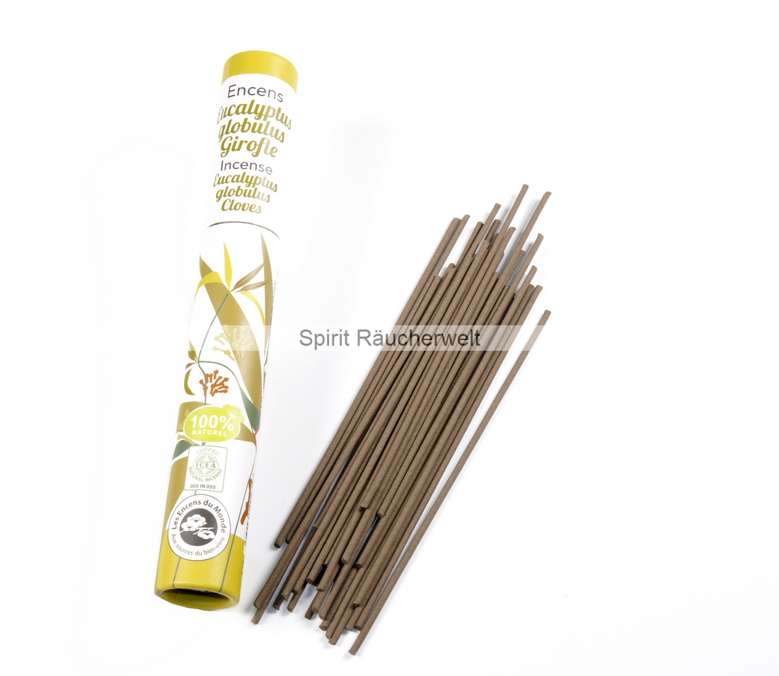 Aromandise Eukalyptus-Gewürznelke Räucherstäbchen sind vitalisierend und anregend in ihrer Wirkung. Eukalyptus und Kampfer erfrischen und Gewürznelke stabilisiert.