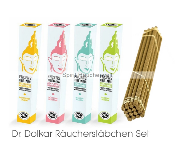 Sie erhalten hier vier Sorten Dr. Dolkar Räucherstäbchen im günstigen Set: