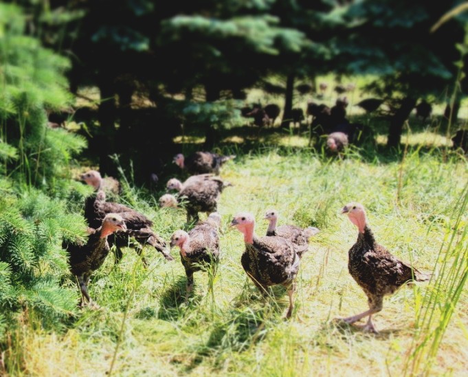 Die Tiere wachsen in kleinem Bestand artgerecht in Freilandhaltung auf.