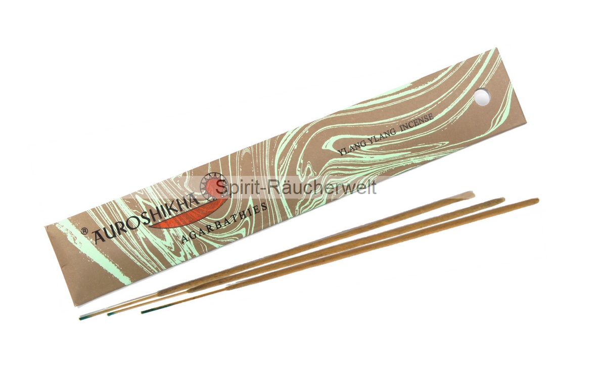 Die Basis von Auroshikha Räucherstäbchen besteht aus Sandelholz, Jeegatpulver und Kokosnussasche. Die daraus zubereitete Masalamasse wird von Hand auf dünne Bambusstäbchen aufgerollt. Anschließend werden diese Stäbchen in duftende Essenzen getaucht.