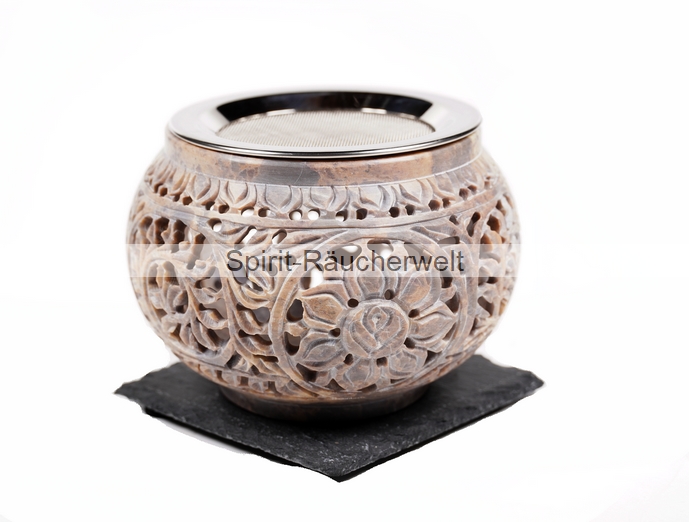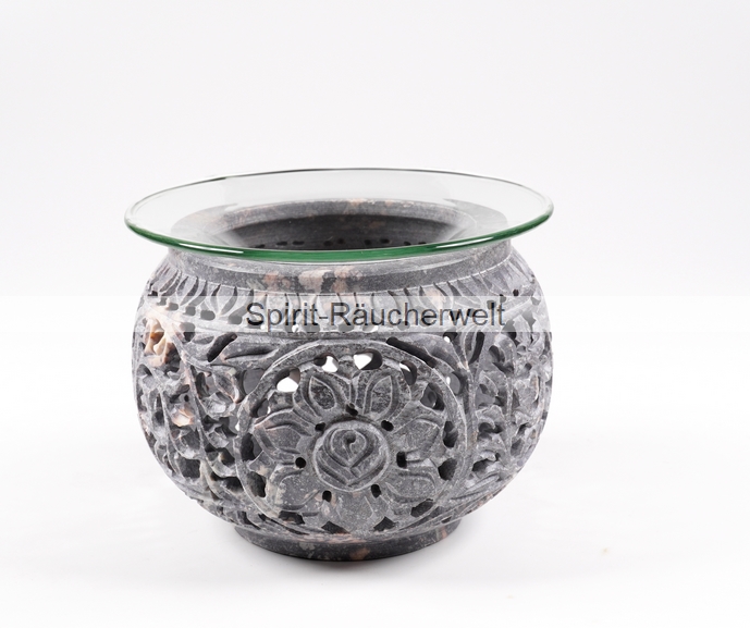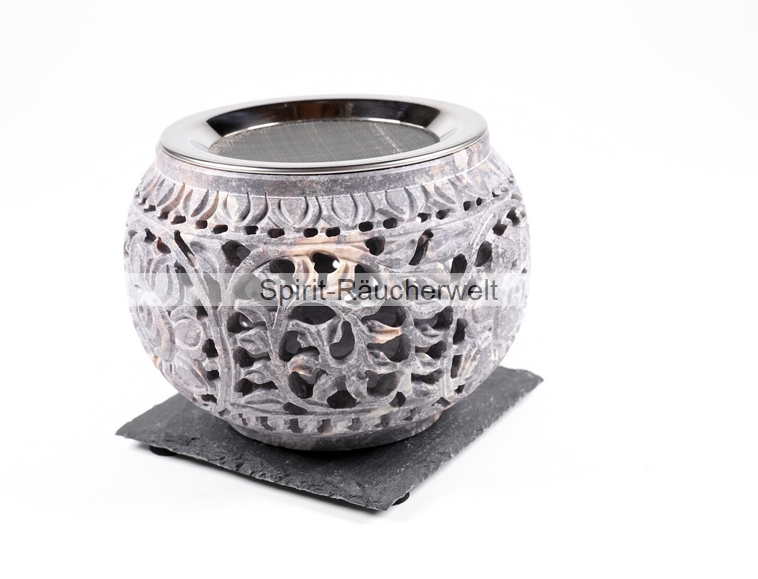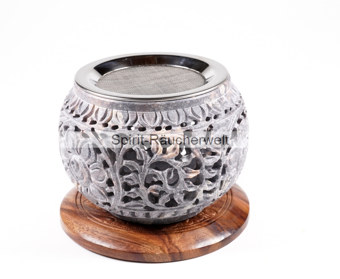 Flora grau Speckstein Räucherstövchen mit Edelstahlsieb