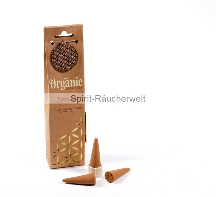Diese Jasmin Räucherkegel werden aus natürlichen Zutaten wie Weihrauchharz, Rindenpulver, Holzpulver, Guar Gum, Harz und naturreine ätherische Öle hergestellt. Sie sind in einer schönen, umweltfreundlichen, recycelbarer Kartonverpackung verpackt und mit einem abnehmbaren, metallenen Blume des Lebens Symbol geschmückt.