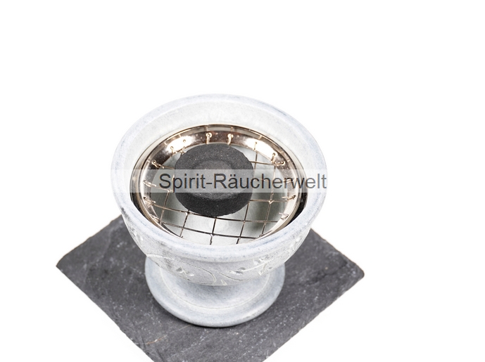 Räucherkohle kann direkt auf des herausnehmbare Messinggitter gelegt und angezündet werden. Der Vorteil beim Räuchern mit Kohle auf dem Gitter liegt in der guten Luftzufuhr von allen Seiten. Die Kohle glüht dadurch sehr gleichmäßig.