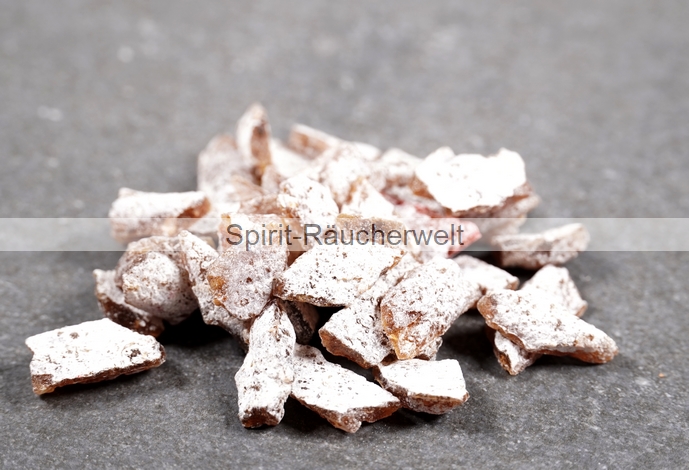 Auch auf Räucherkohle läßt sich Rosenweihrauch klassisch verräuchern. Hier nur kleine Portionen auflegen und die angeglimmten Harzrückstände mit der Räucherzange wieder von der Kohle entfernen um unangenehmen Brandgeruch zu vermeiden. Bei Bedarf anschließend wieder eine kleine Portion Aromaweihrauch auflegen.