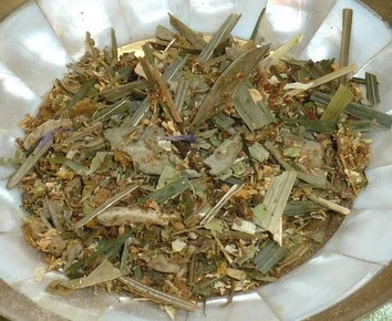 Inhaltsstoffe: u.a. Eisenkraut, Helmkraut, Mariengras, Salbei, Holunder, Ysop.