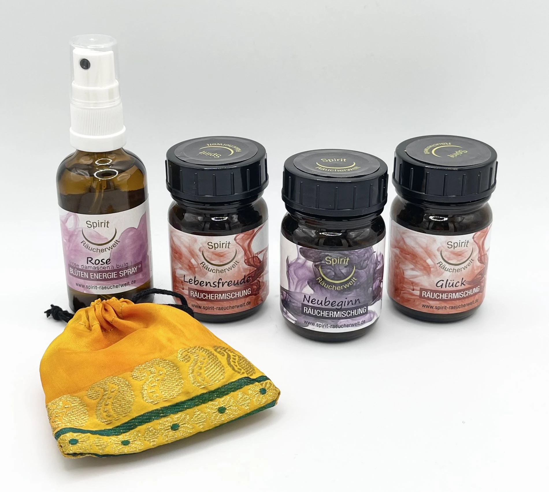 Eine allgemeine Anleitung für die Räucherung auf Kohle und Stövchen und eine Ritualanleitung für die Mischung Neubeginn sind zusätzlich im Paket.