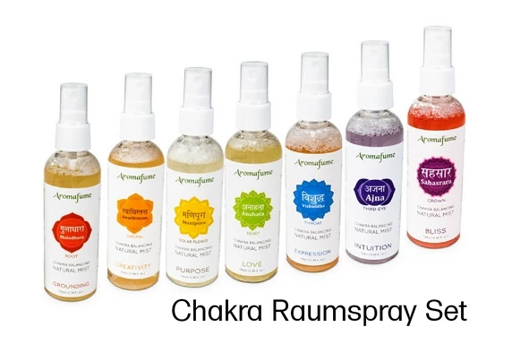 Die Chakra-Sprays von Aromafume sind feine Duftkompositionen aus ätherischen Ölen. Sie sorgen für ein frisches, angenehmes Raumklima. Die Sprays sind auf die sieben Chakren abgestimmt und eignen sich hervorragend, um die energetische Schwingung in Räumen anzuheben.